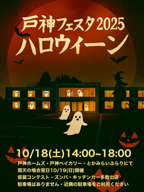 戸神ホームズ・戸神ベイカリー・とかみらいぶらり敷地内を会場として「戸神フェスタ2025ハロウィーン」が10月18日(土)に開催されます。